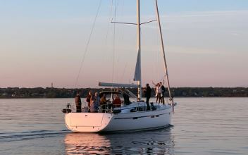Renting Galeon 530 FLY yacht is always with a captain who will make sure your stay will be left with great memories. Yacht is also perfect for longer rental and overnight sleeping on the lower deck to travel around the whole Baltic sea and visit other cities.
